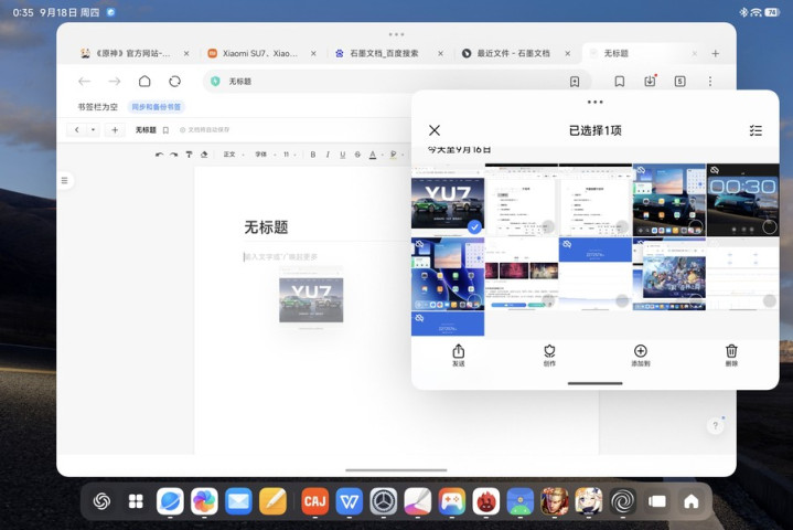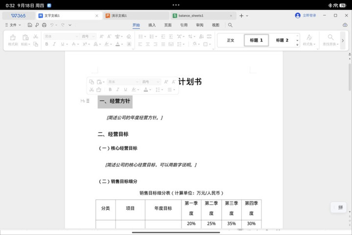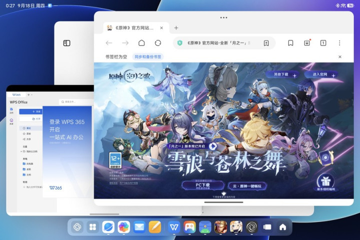 此外,针对平板的大屏,澎湃OS3系统还带来了PC级的应用与交互体验。比如内置的PC级WPS,在UI布局、交互体验上都与PC版高度一致。并且支持窗口多开,处理文档、表格、PPT都很方便,非常适合轻度办公。