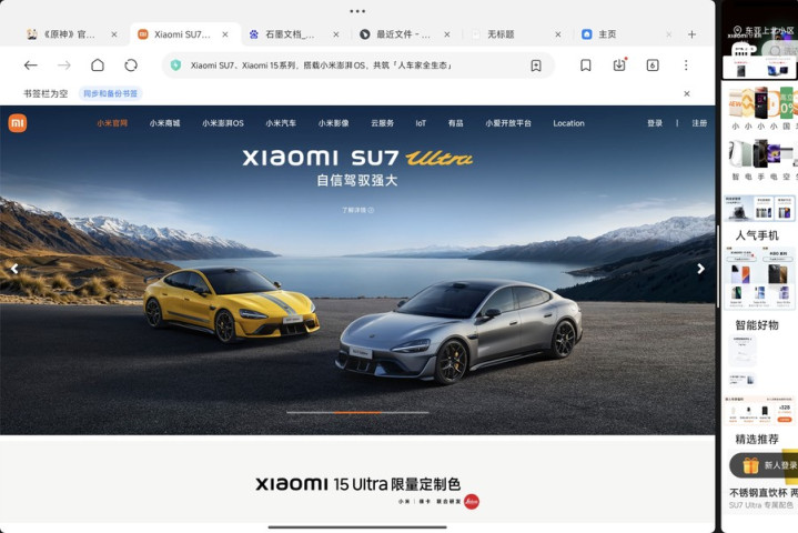 浏览器也对标PC完全重做,页面布局、交互都和PC一样,避免了使用平板打开的却是放大版的移动端网页的尴尬情况,网页支持自由缩放,页面会自动适配比例。而且像鼠标悬停预览、快捷键等功能也全都是支持的。