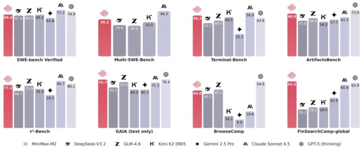 如开头介绍,Minimax官方将M2定义为一个专为智能体和编程而生的模型。