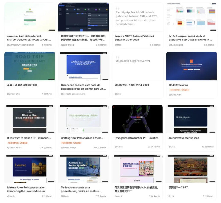 同时在该平台上,也展示了许多Minimax Agent的现成作品。