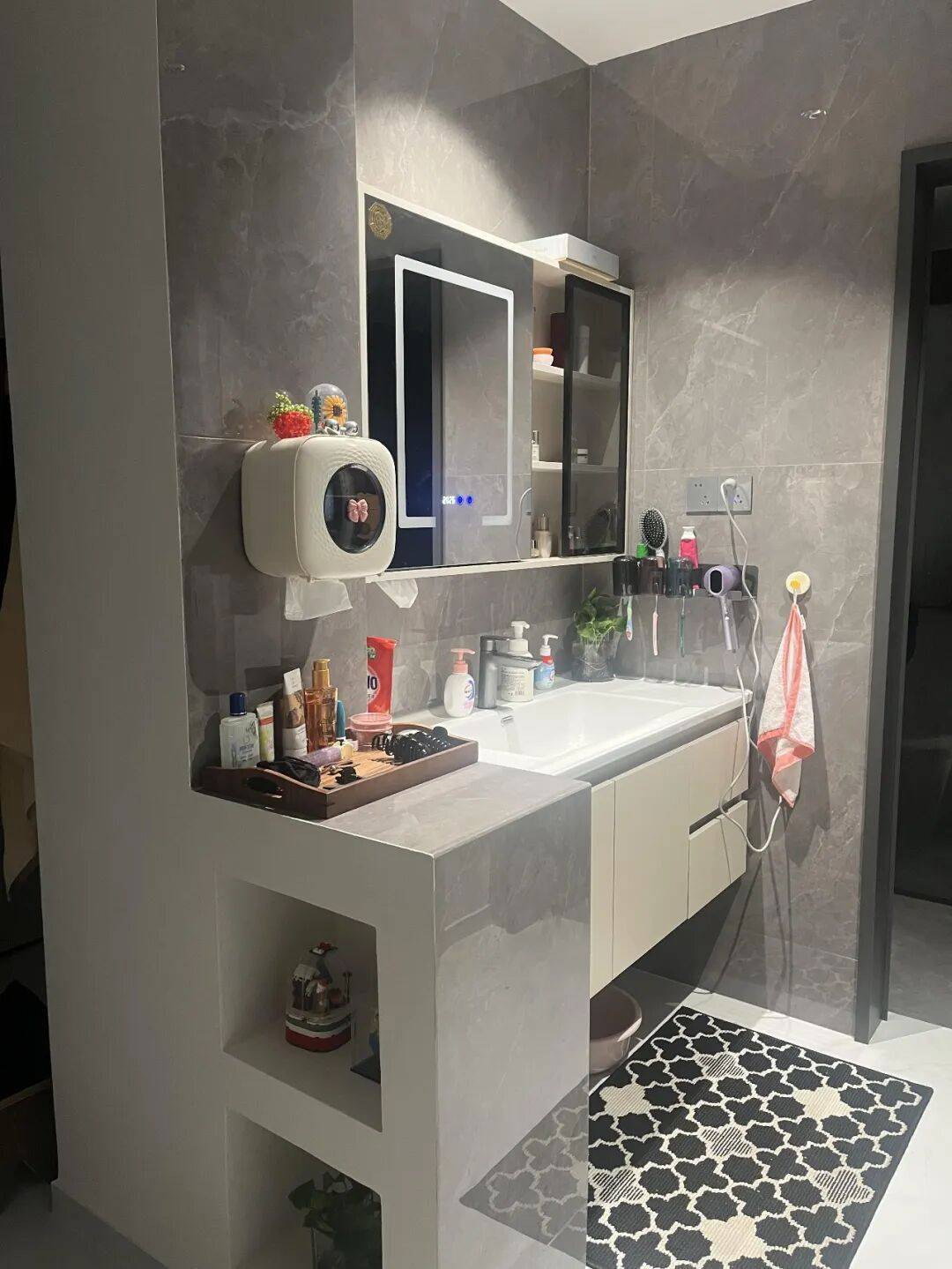 Tips:记得柜子台面和侧面用石材包起来,避免溅水受潮。