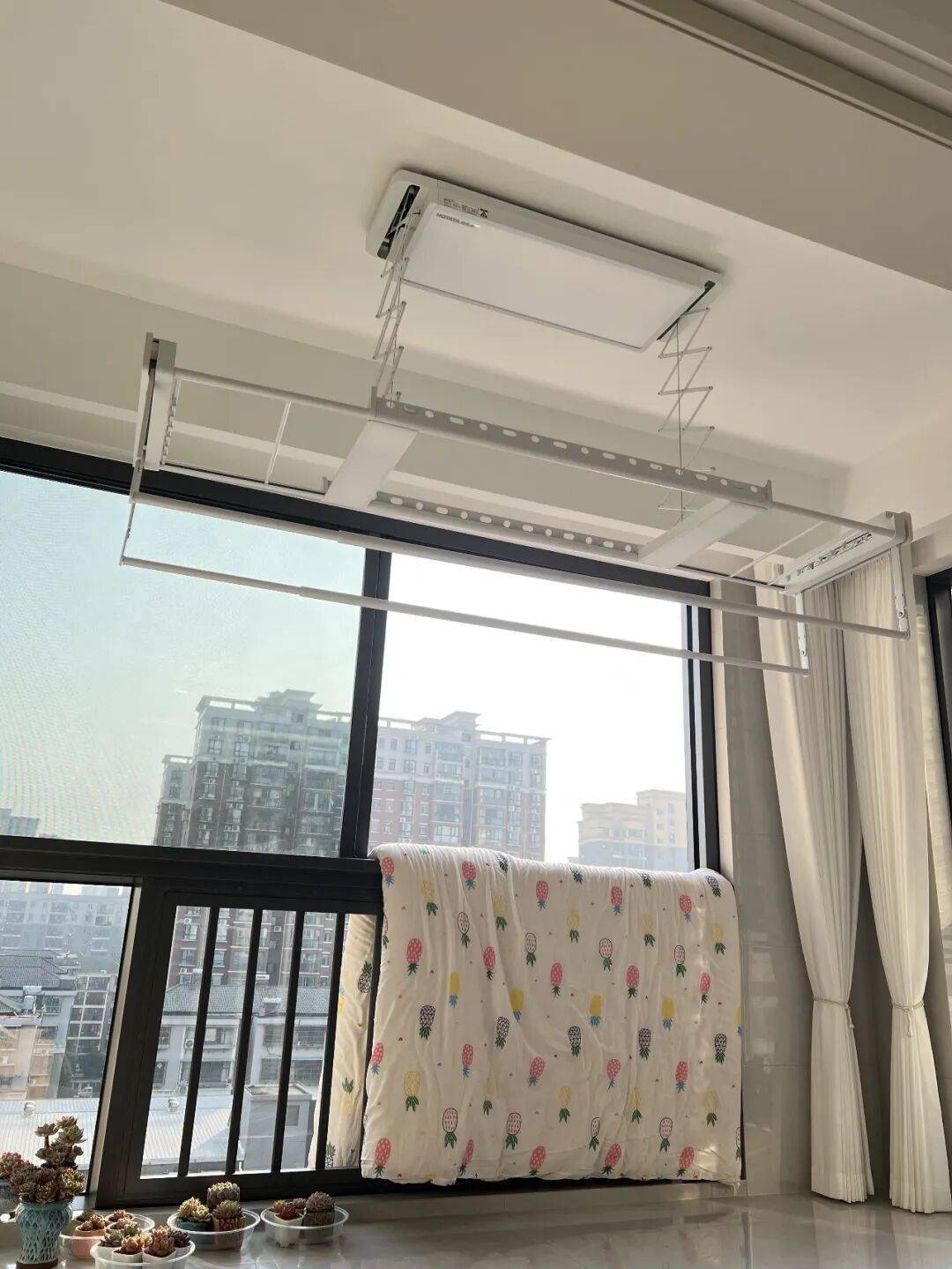如今的阳台晾衣杆基本都是电动的,轻轻一按即可自动升降,极大地提升了晾衣取衣效率。