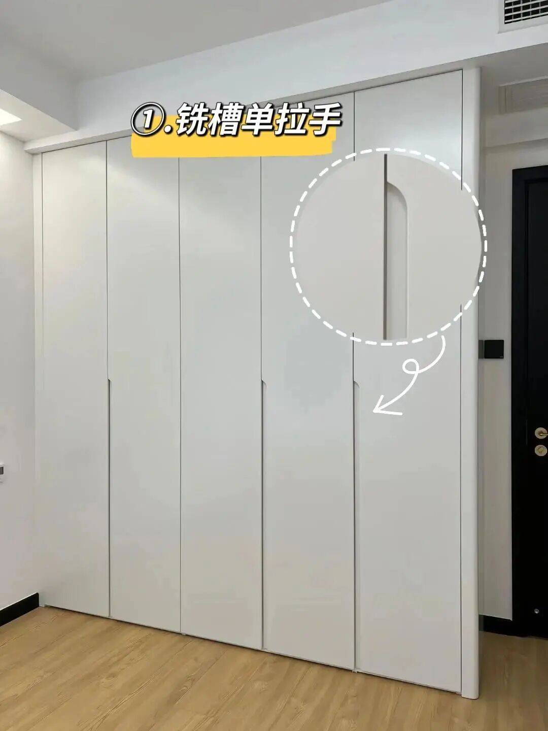 取而代之的是柜门铣槽拉手,视觉效果同样简洁高级,且毫无隐患,使用起来与普通拉手无异。